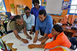 We've seen firsthand that the "donation dumping" practice commonly used by charities that send throwaway books—library discards, worn-out, outdated, or inappropriate books—to Caribbean children is harmful. Hands Across the Sea purchases only new books from the world's leading education and children's book publishers. Not only do children respond to new, well-written and well-illustrated books with contemporary subject matter, the effect of "seeing themselves" in Caribbean-content books is particularly powerful for young readers. How do we know which books and teaching resources to send? All materials are selected in collaboration with the school principals, teachers, and U.S. Peace Corps Volunteers via each year's