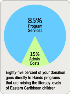 U.S.-registered charities. Eighty-five percent of your donation goes directly to helping raise the literacy levels of Caribbean children—this includes paying for books and all of the ways that Hands staff and Literacy Links support Hands Wish Lists projects, such as helping to create or rejuvenate lending libraries through our CLASS program. Hands has earned the GuideStar Platinum Level of Transparency and the Top-Rated Nonprofit seal from Great Nonprofits.