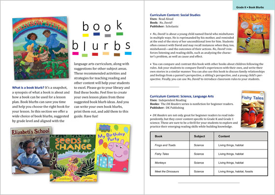 A book blurb is a snapshot of what a book is about and how it can be used for a lesson plan. In this section we offer a wide choice of book blurbs, suggested by grade level and aligned with the language arts curriculum, along with suggestions for other subject areas.